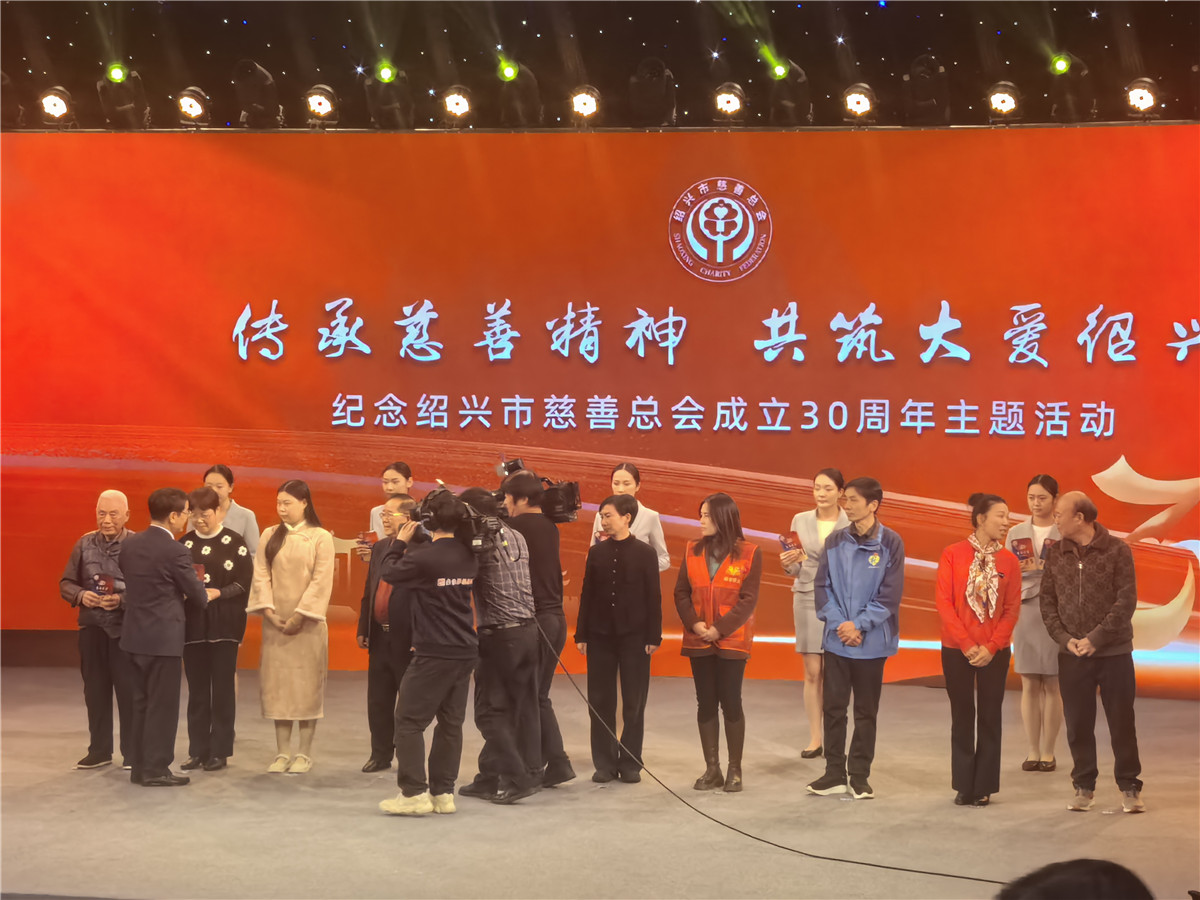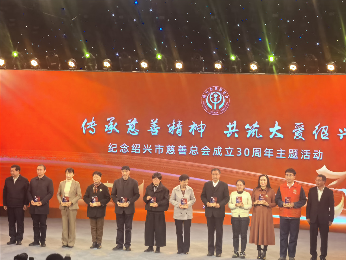 绍兴市慈善总会成立30周年慶典,在绍兴市电视台演播厅隆重举行,浙江省十八届政协副主席、浙江省慈善总会会长裘东耀、绍兴市委书记施惠芳、绍兴市委副书记、绍兴市市长吴登芬、绍兴市副市长罗延发、绍兴市人大主任谭志桂、绍兴市政协主席张新宇、绍兴市政协副主席、市委秘书长马国灿、绍兴市第八届人大副主任、市慈善总会会长胡水君、老领导袁长寿等市委市政府相关领导莅临出席,欢乐慈爱义工团团长、理事长裘宇飞,秘书长刘丽佳,秘书徐樱桃,办公室主任朱迎春,项目部部长严彬,以及优秀志愿者代表一行应邀参加,欢乐慈爱工团荣获绍兴市优秀志愿服务组织奖,秘书长刘丽佳代表欢乐慈爱义工团,领取了沉甸甸的奖杯!
